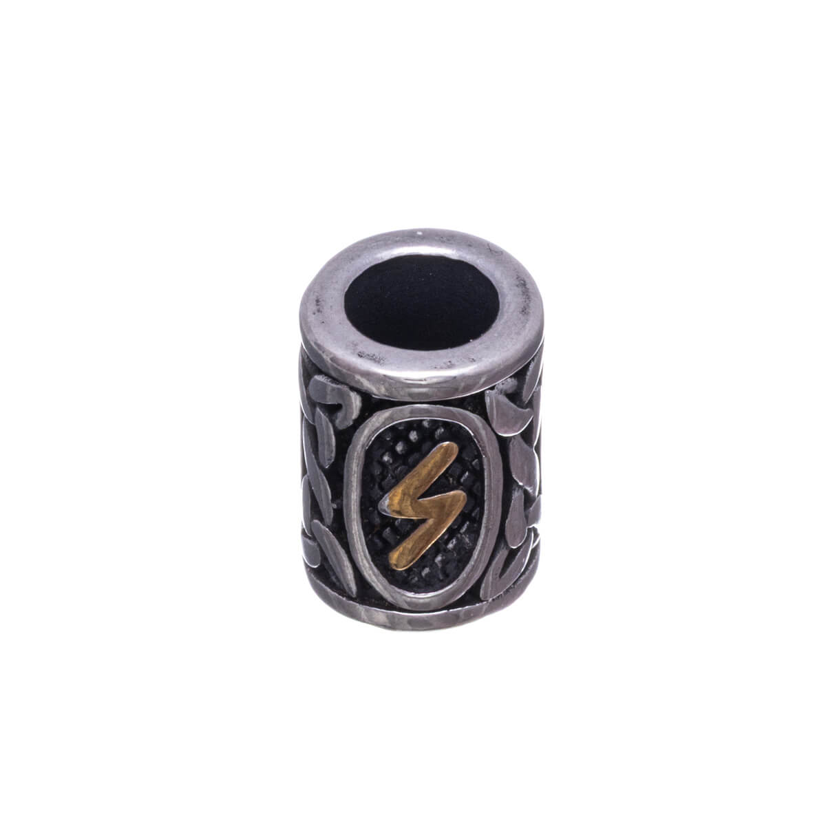 Tämän partakorun keskiössä on pitkänomainen, virtaava riimusymboli, joka edustaa etenemistä, sopeutumista ja elämän jatkuvaa liikettä. Muoto viittaa siihen, että voima ei synny pysähtymisestä vaan kyvystä kulkea eteenpäin olosuhteista huolimatta. Riimua ympäröivä punottu ornamentiikka sitoo liikkeen perinteeseen ja esi-isien viisauteen – jokainen askel on osa pidempää ketjua. Hienovarainen kullanvärinen yksityiskohta korostaa suuntaa ja päämäärää: tietoista valintaa kulkea omaa polkua.