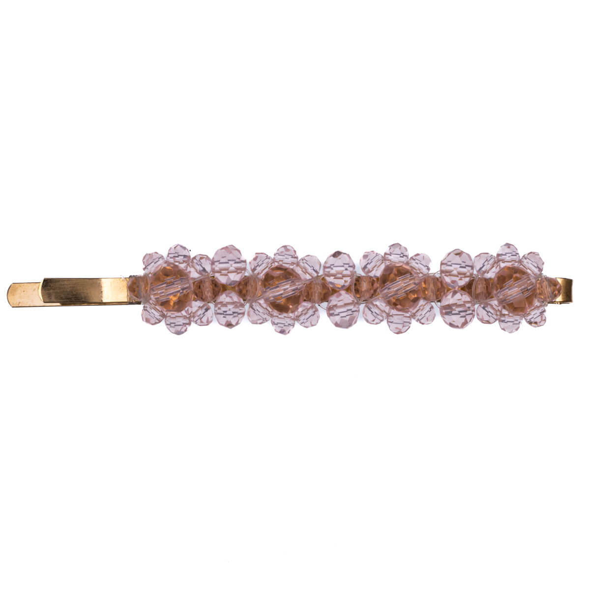 Siro hiuskoru on helppo laittaa hiuksiin. Tässä mallissa kultainen hiuspinni on koristeltu viisteisillä lasihelmillä.