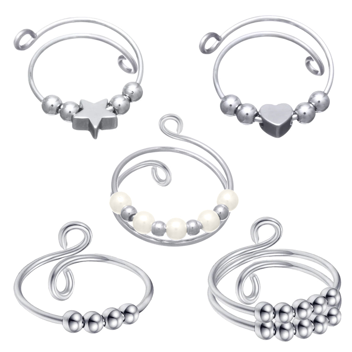 Pyörivä helmi antistressisormus hopea (teräs 316L) 5kpl setti