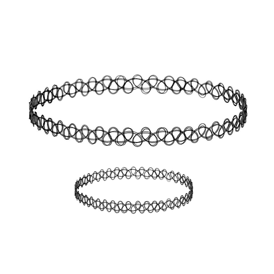 Palaa 90-luvun nostalgiseen tyyliin tämän ikonisen tattoo choker -setin avulla! Settiin sisältyy sekä klassinen joustava choker-kaulakoru että siihen täydellisesti sopiva rannekoruversio. Molemmat ovat valmistettu kevyestä ja joustavasta nylon-muovista, joka mukautuu kauniisti käyttäjän mukaan.