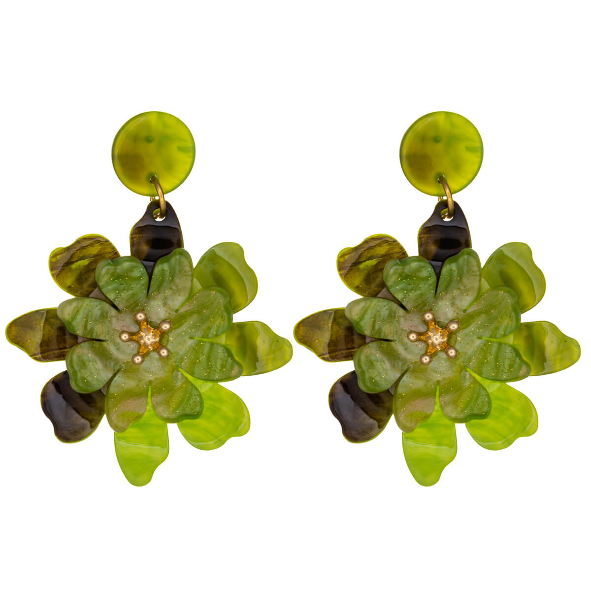 Näyttävät ja kevyet käsintehdyt kukkakorvakorut, joissa kerrokselliset terälehdet ja hienovarainen kimallus tuovat asuun persoonallisen ja kesäisen ilmeen.