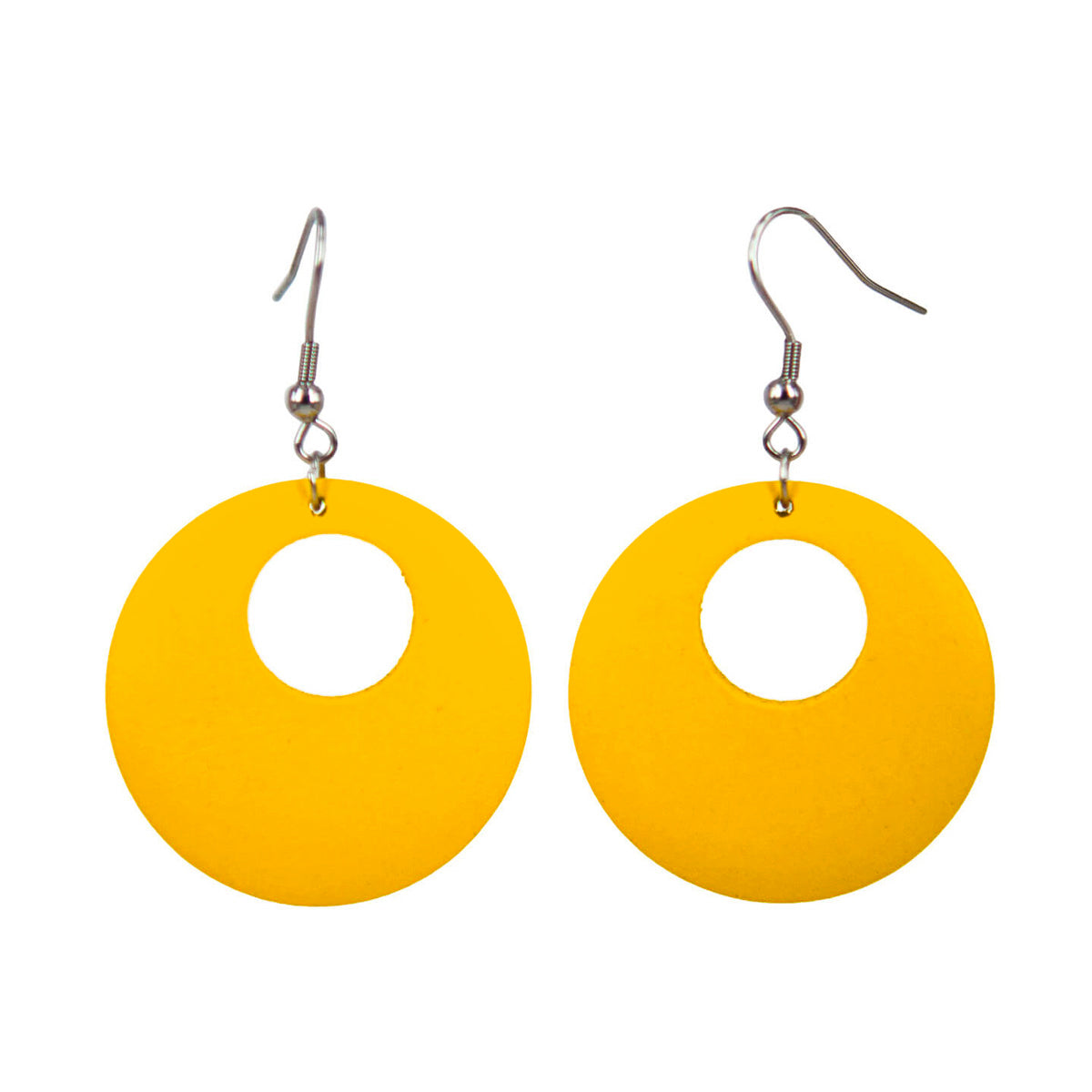 Pyöreä puinen korvakoru on kiva piristys arkeen. Materiaalin ansiosta tuote on erittäin kevyt.