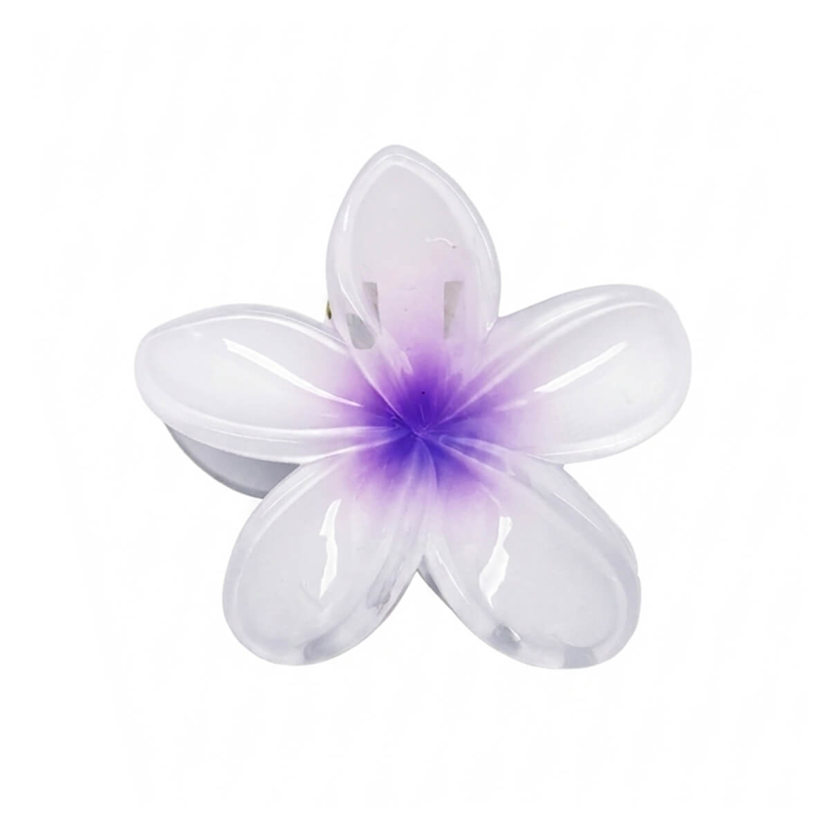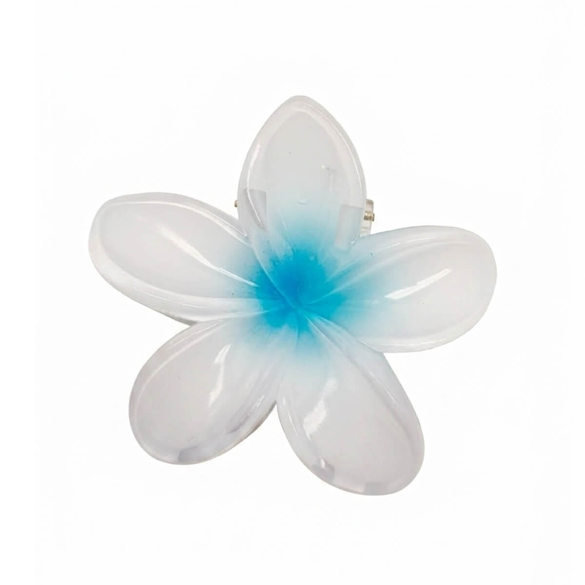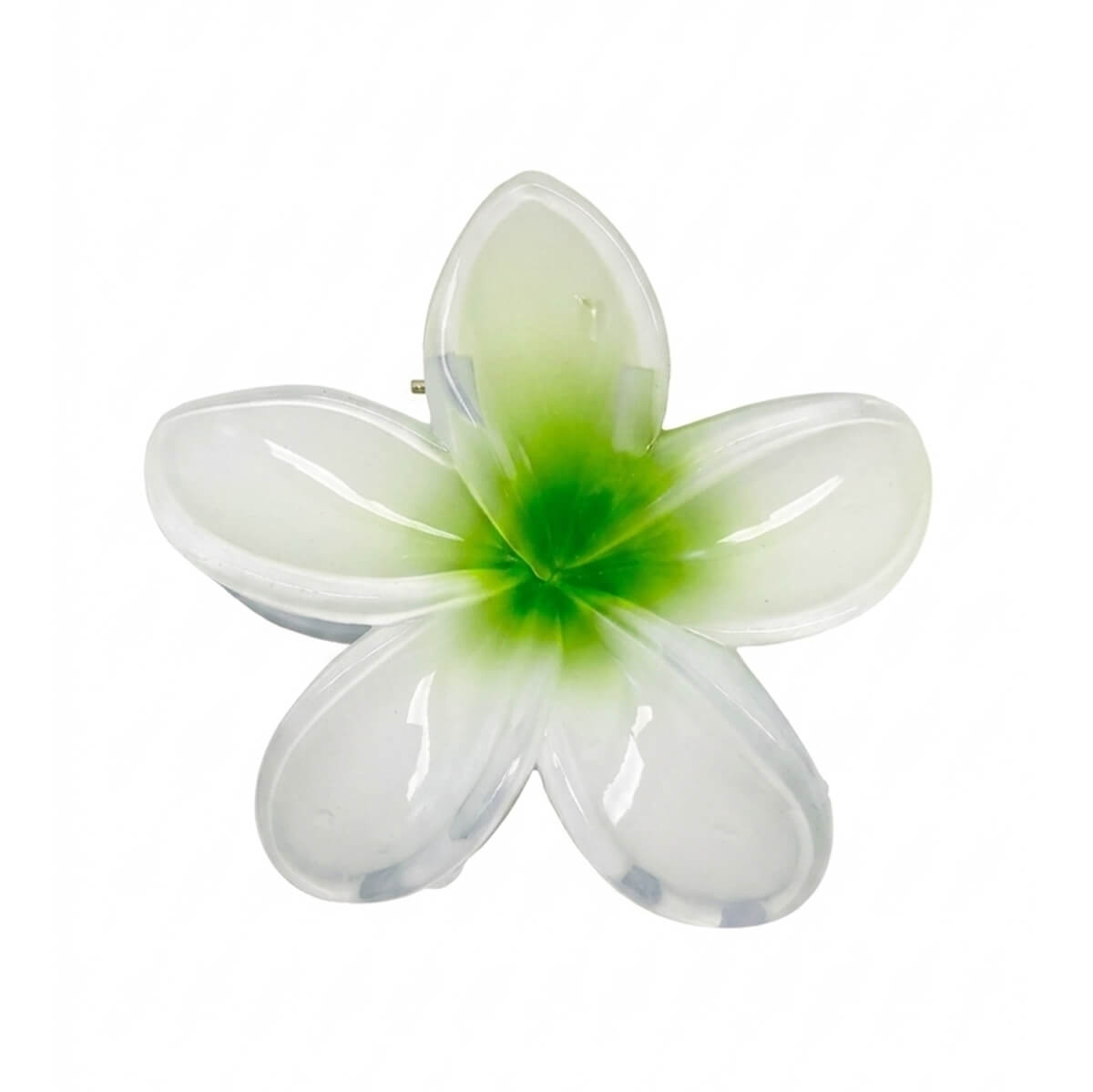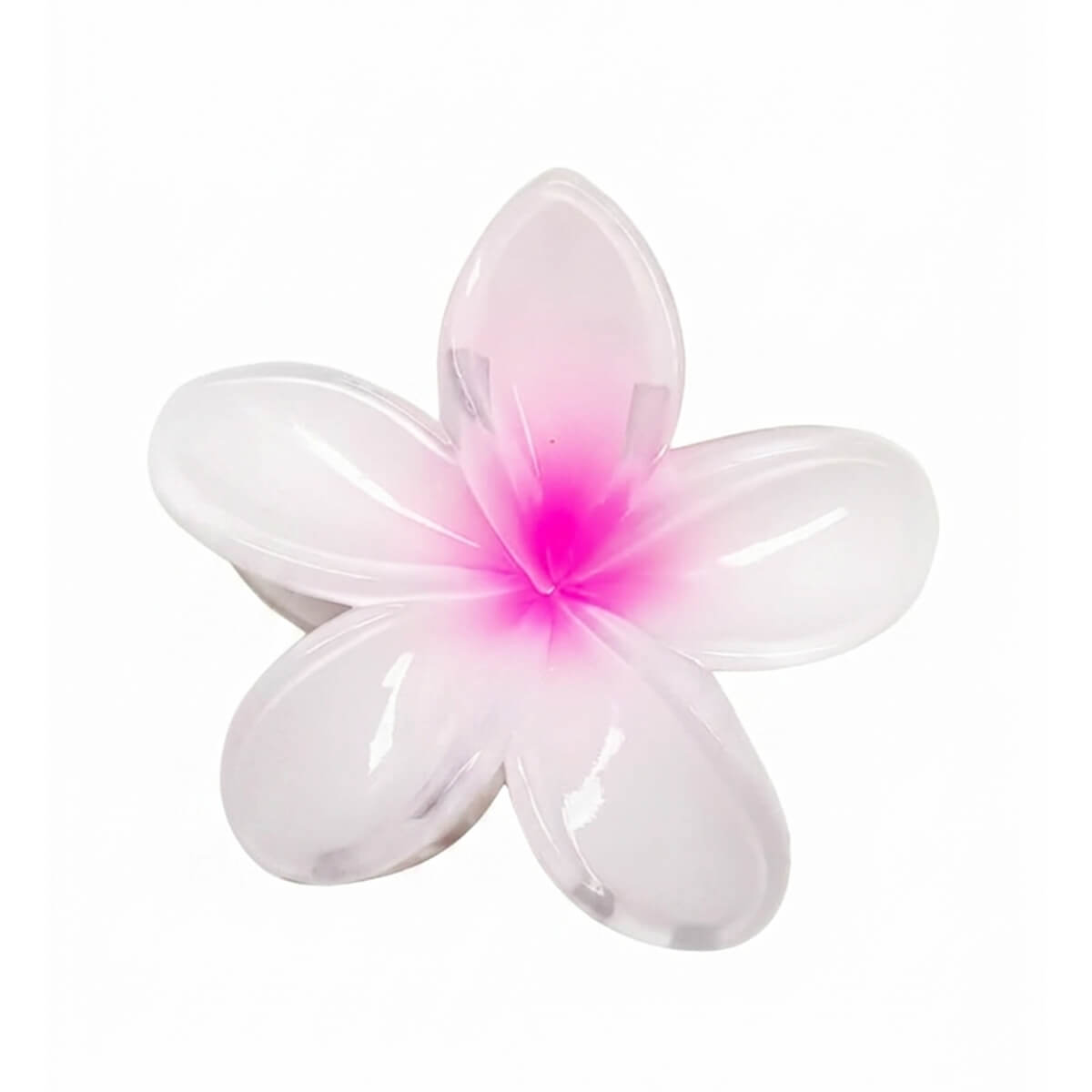 Vaalea kukka hainhammas hiusklipsi tuo hiuksiin raikkaan ja kesäisen ilmeen. Valkoinen kukkamuoto yhdistettynä kirkkaaseen värikeskustaan tekee hiusklipsistä näyttävän mutta helposti yhdisteltävän asusteeseen.