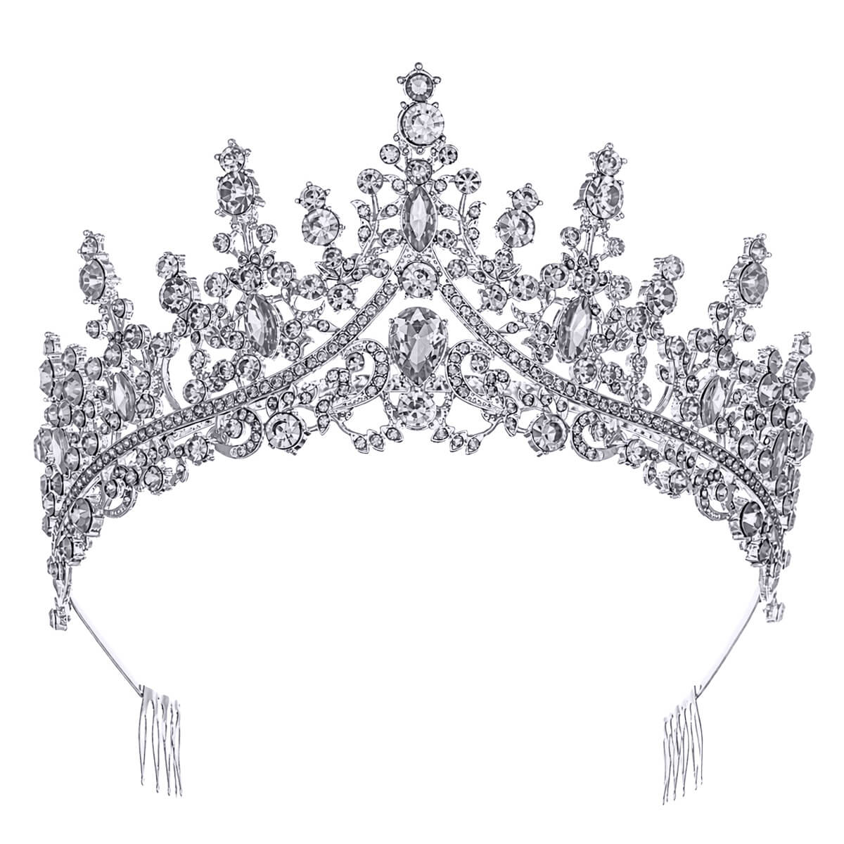 Näyttävä prinsessatiara kruunaa juhlakampauksen säihkyvällä tavalla. Korkea kruunumainen muoto ja kimaltavat lasikivet tekevät tästä tiarasta upean valinnan juhliin, joissa hiuskoru saa näkyä.