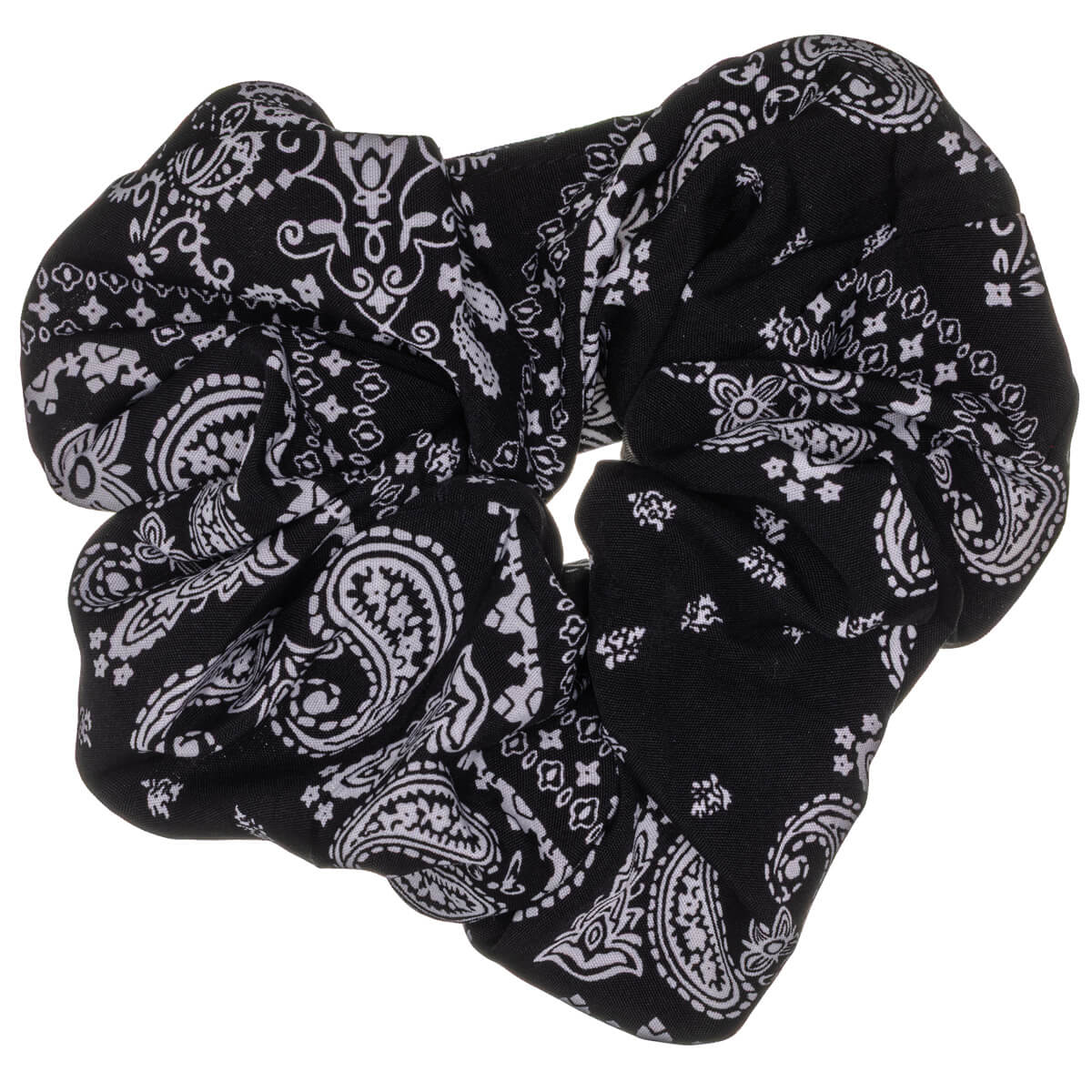 Tämä paisley-kuvioinen scrunchie tuo klassisen bandana-tyylin moderniin hiuslookiin. Isompi 14 cm koko ja runsaampi kangas tekevät tästä scrunchiesta näyttävän ja ilmavan – täydellinen valinta, kun haluat hiuksiin enemmän volyymia ja ilmettä.