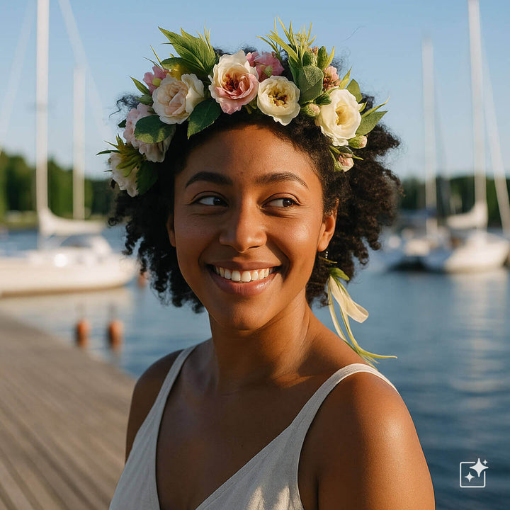 Juhannusseppele hiuksiin on ihana tapa koristella hiuksia ja juhlistaa keskikesän juhlaa. Se sopii hyvin rennompiin juhliin ja antaa juhannuslookillesi kauniin viimeistelyn. Kukkahiuspanta on tukeva valinta juhannukseksi. Tekokukkien hyvä puoli on se, että pantaa voi käyttää useampana päivänä. Myös panta pysyy huomattavasti paremmin päässä kuin oikeista kukista tehty seppele.