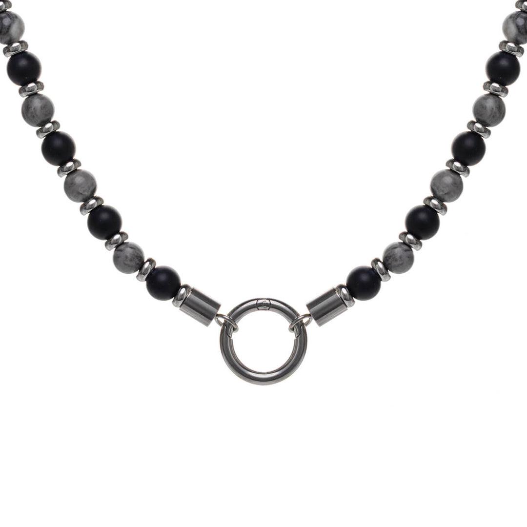 Helmikaulakoru avautuvalla teräsrenkaalla – mustat & harmaat helmet