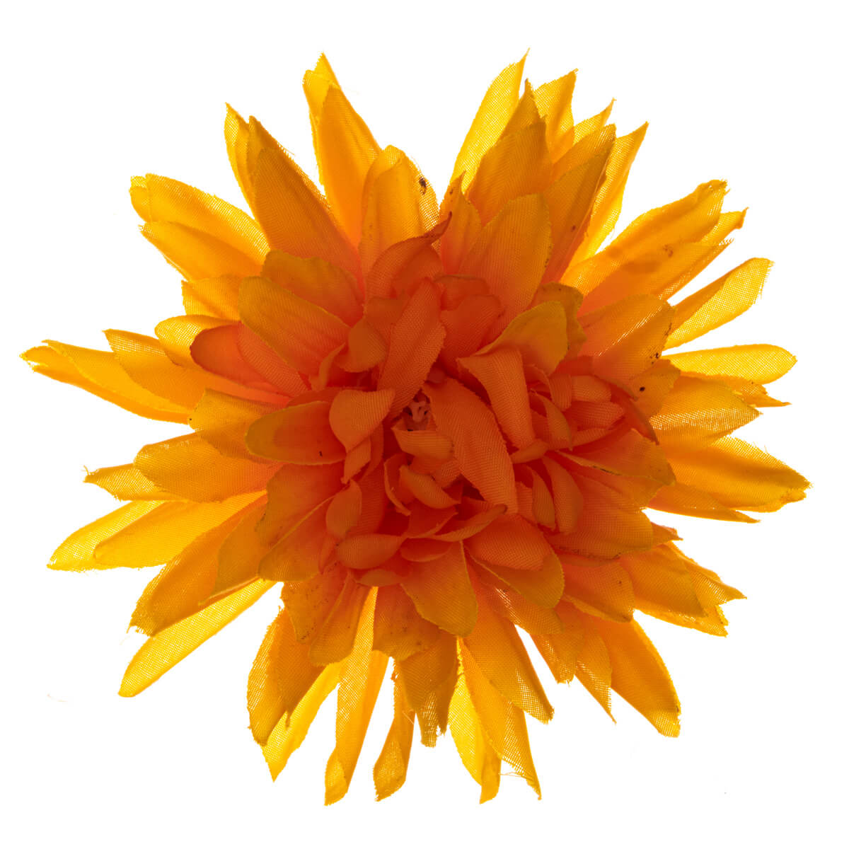 Ein anmutiges Bouquet verleiht dem Outfit einen Hauch von Flair und vervollständigt die Frisur. Die spitzen, schmalen Blütenblätter bilden eine kantige, klobige Blume. Zusätzlich zur Haarklammer hat die Blume am unteren Ende eine Brosche, so dass man sie leicht an Textilien befestigen kann.
