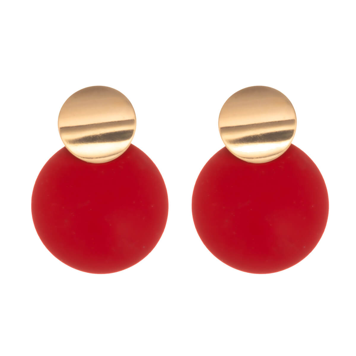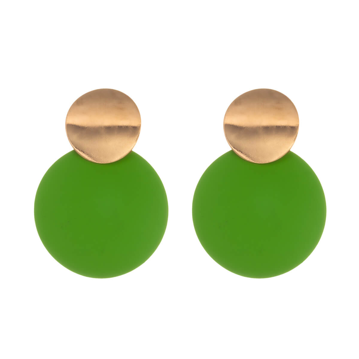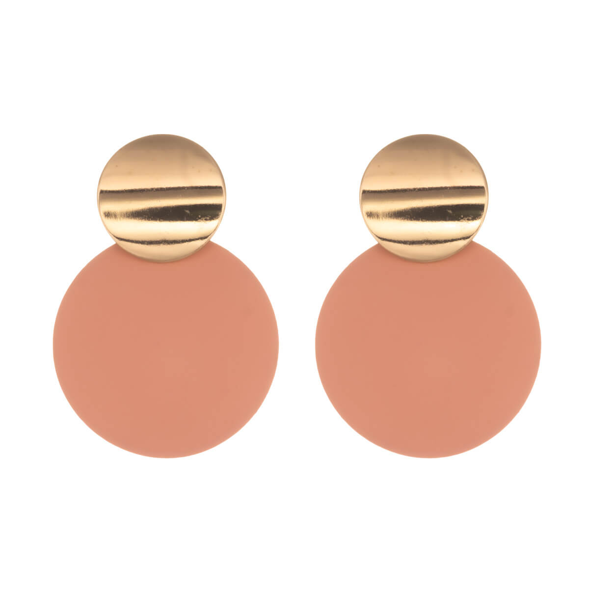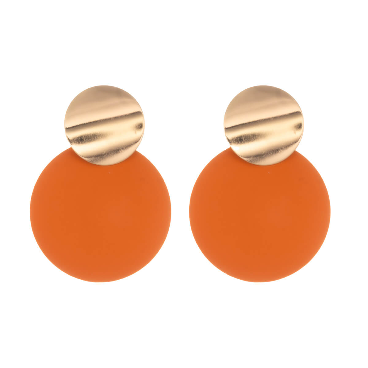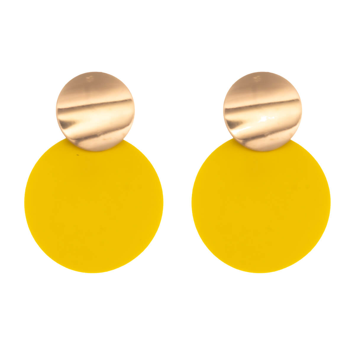 Zwei flache Ringe unterschiedlicher Größe bilden einen stilvollen Ohrring. Der obere Ring ist goldfarben, während für den unteren Ring mehrere Farben zur Auswahl stehen.