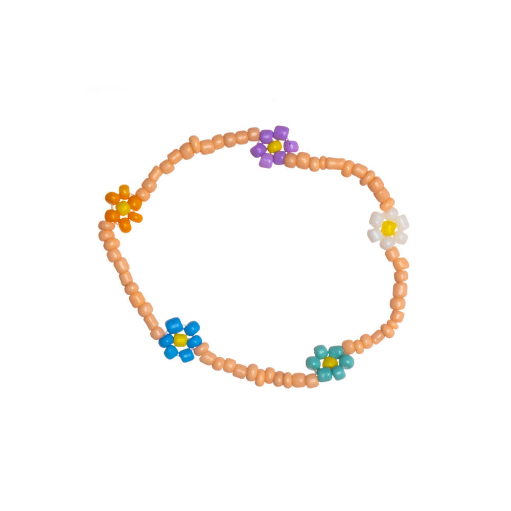 Die einfarbigen Mini-Perlen sind anmutig am Handgelenk. Die bunten Perlen sind zu kleinen Blumen für ein Armband geformt. Das Armband ist aus starkem, elastischem Silikon, so dass kein separater Verschluss erforderlich ist.