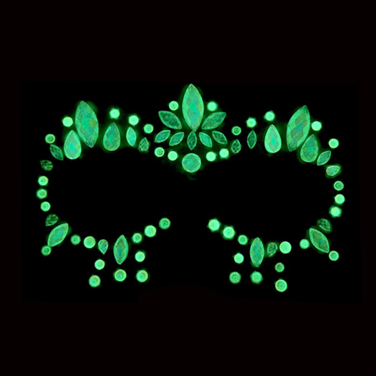 Hautdiamanten sind mit Phosphor beschichtet und leuchten im Dunkeln grün. Um im Dunkeln zu leuchten, muss der Phosphor zunächst eine ausreichende Menge Licht absorbieren. Die Skin-Diamanten lassen sich dank der einheitlichen Klebefläche leicht auf der Haut befestigen, so dass Sie nicht jeden Stein einzeln anbringen müssen.