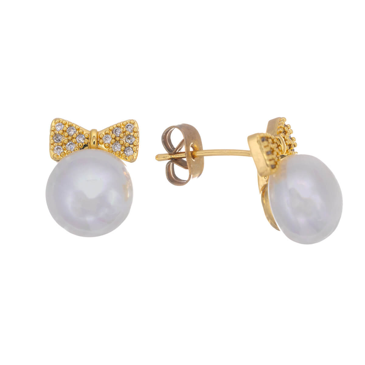 Perlen-Zirkonia-Ohrringe mit Fliege