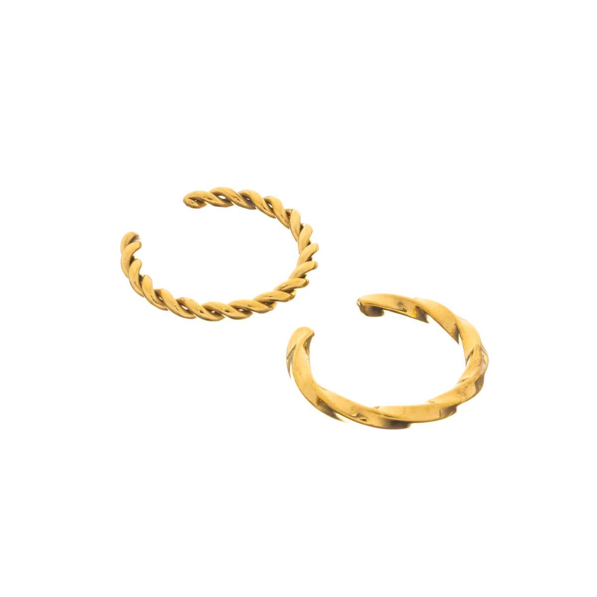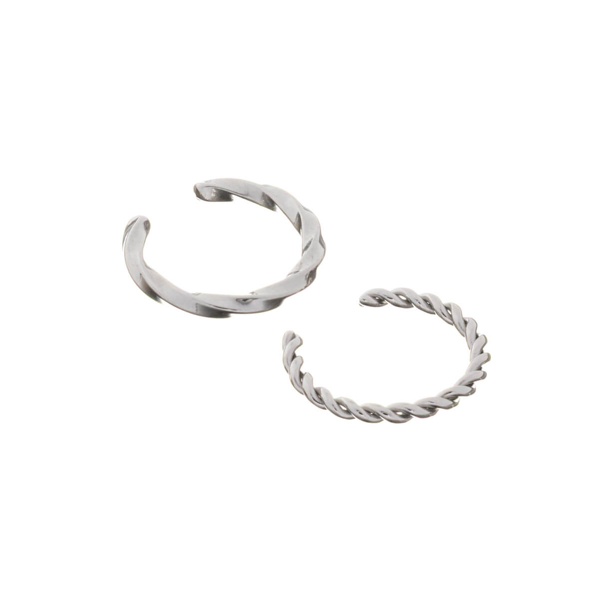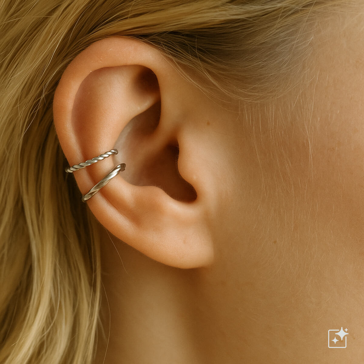 Die Ohrmanschette ist ein elegantes Schmuckstück für den Knorpel, das nicht durchstochen werden muss. Dieses Produkt besteht aus zwei separaten Ringen, die beide in Form gedreht sind und aus Chirurgenstahl hergestellt werden. Der Stahl nutzt sich beim Gebrauch nicht ab. Der Ring wird auf das Ohrläppchen gedrückt.
