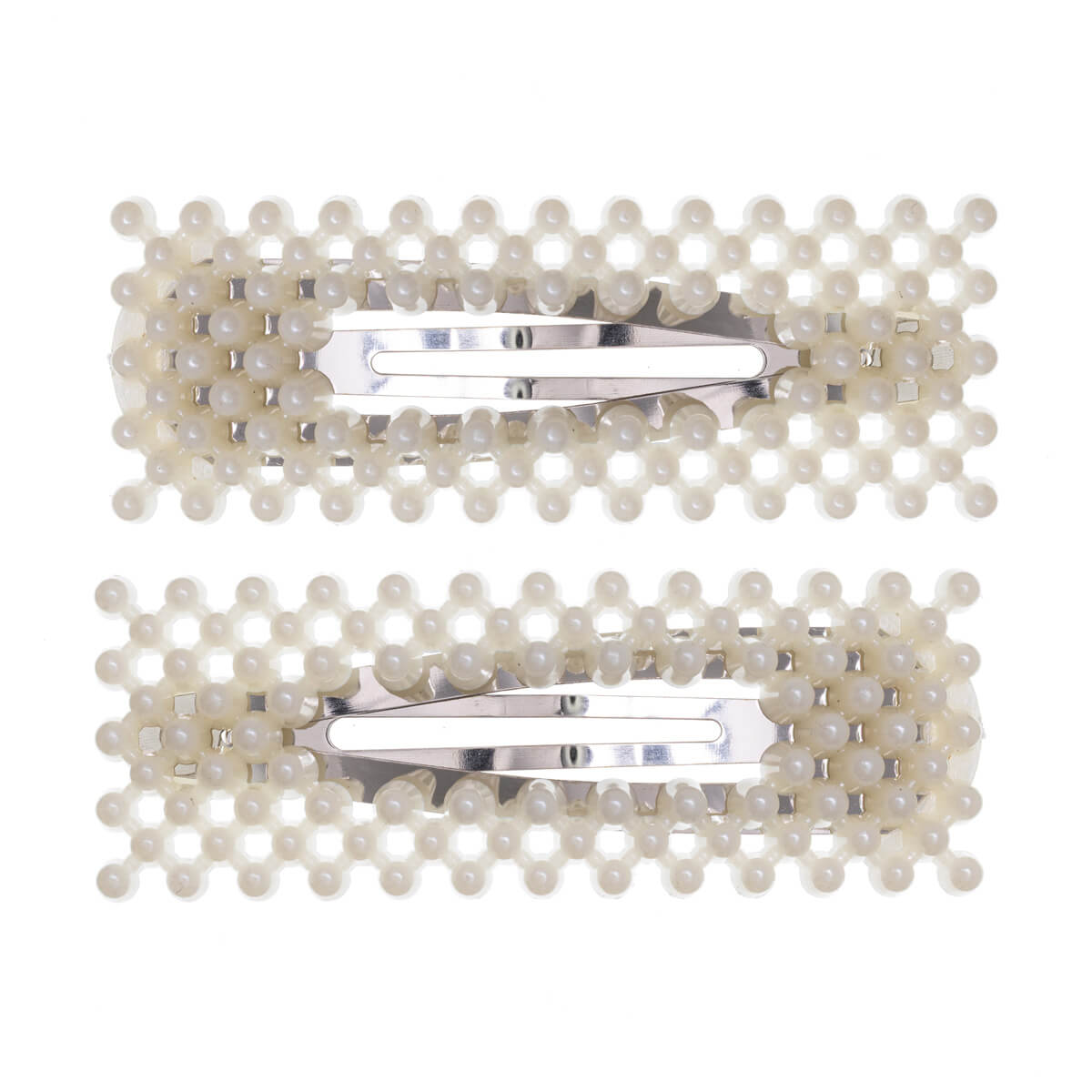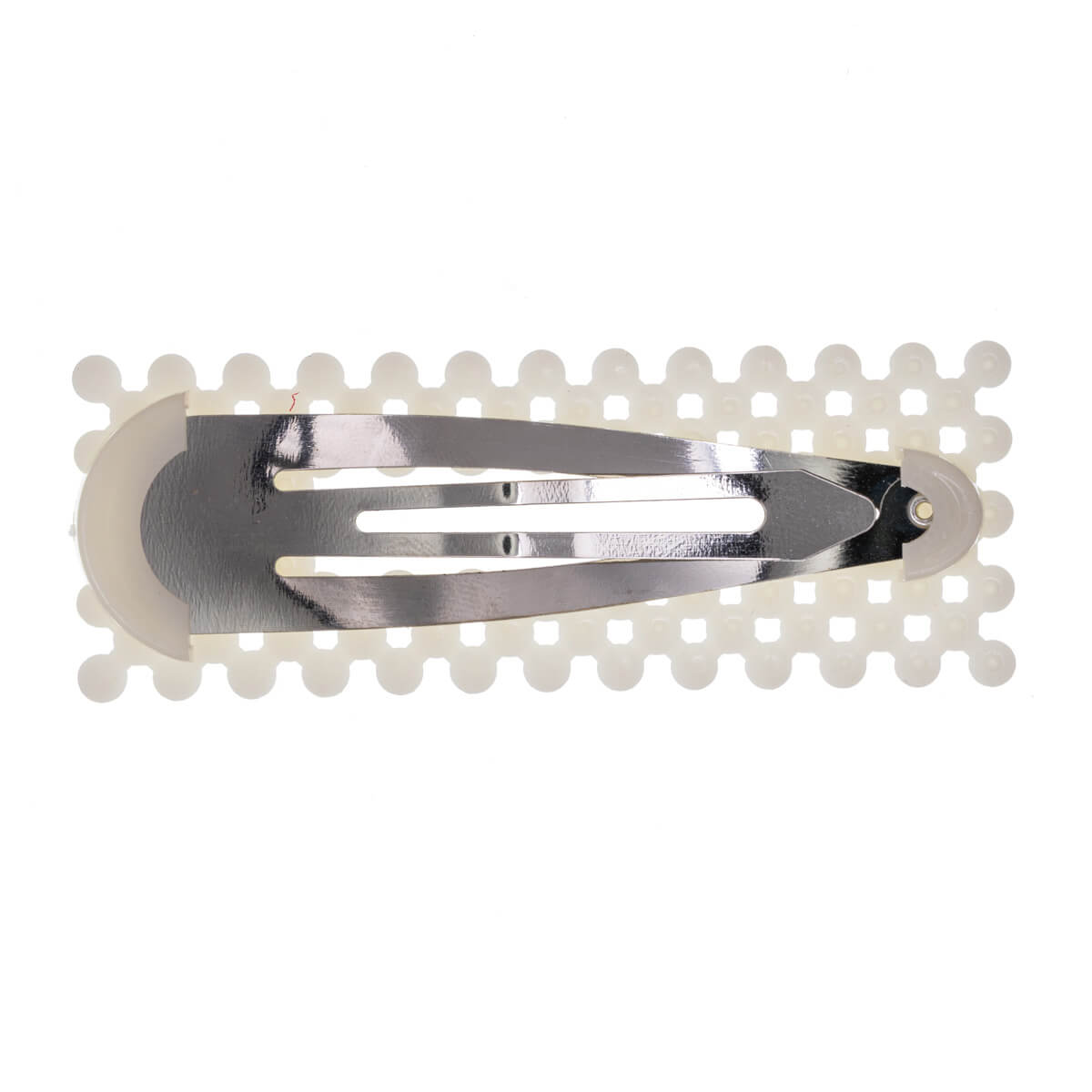 The pearl hair clip is an elegant detail. Button snap clips keeps side hair in check and adds a colourful splash of colour to your hairstyle.