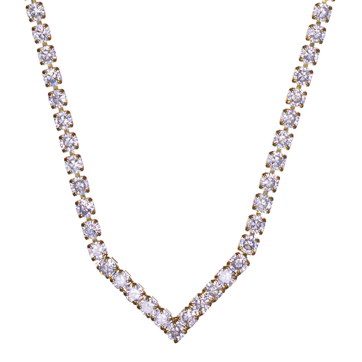An elegant and timeless V-shaped zirconia necklace that brings beautiful light to the neck and adds a touch of understated luxury to any festive outfit. The single-row, short design sits beautifully on the collarbone and pairs well with both evening gowns and minimalist outfits. Perfect for parties, evening events, and special occasions.