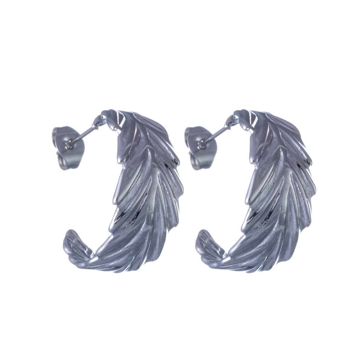 Beautiful small earrings are patterned in the shape of a leaf. The earrings are made entirely of surgical steel. The earrings will not wear out in use.