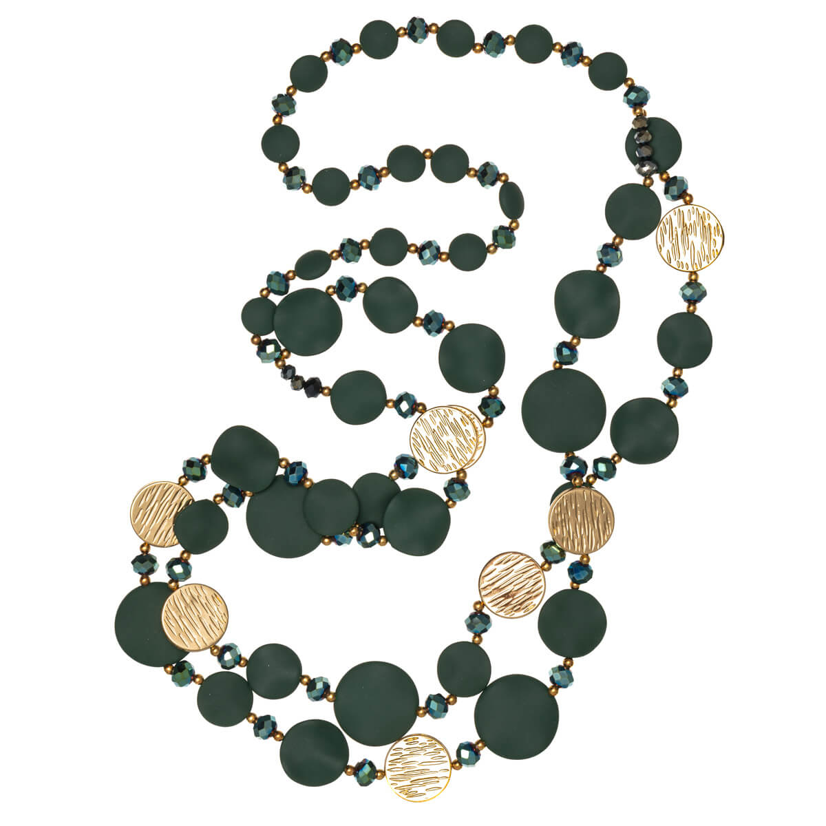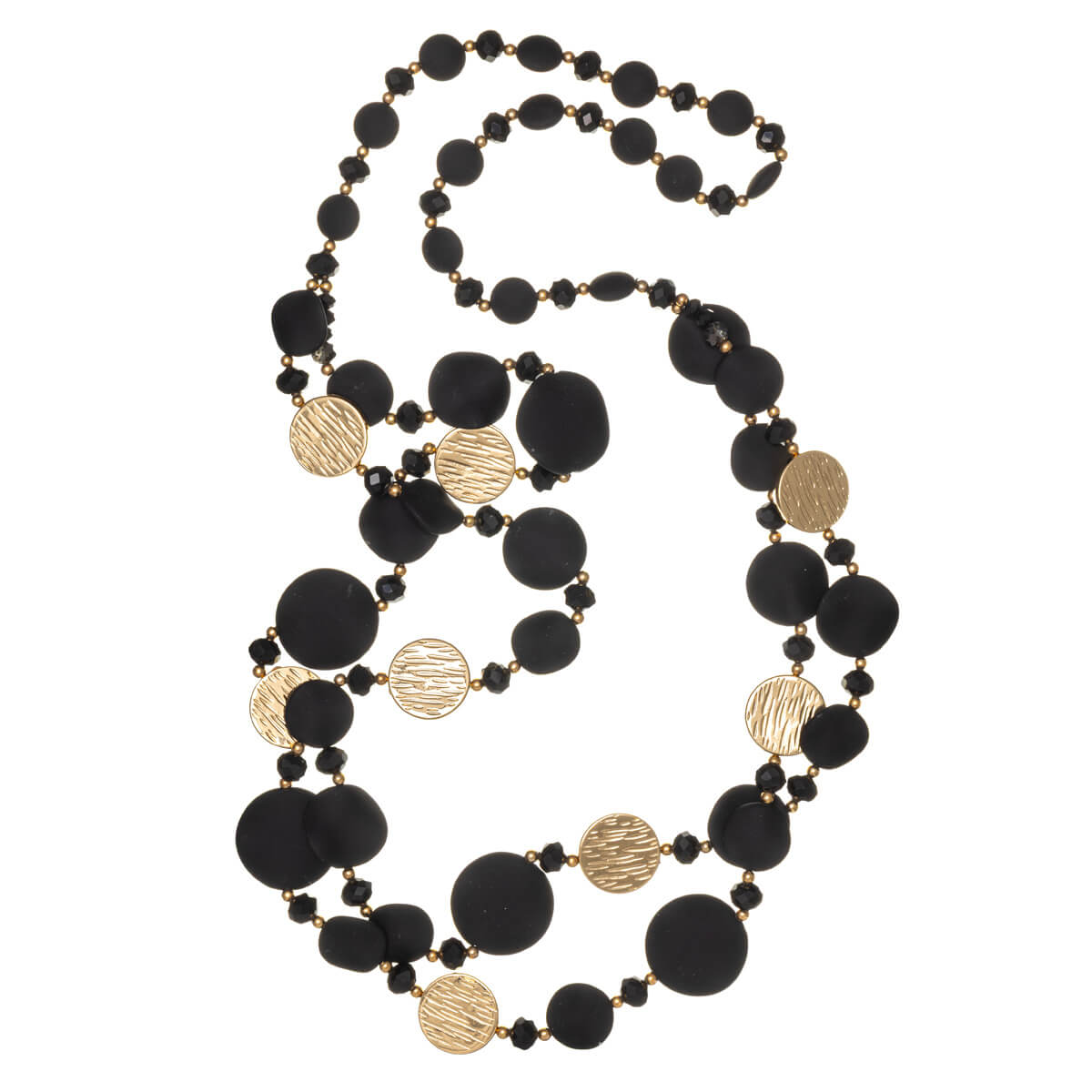 The long necklace is an elegant piece of jewellery for any outfit. In this model, the necklace becomes a double row halfway through the jewel.