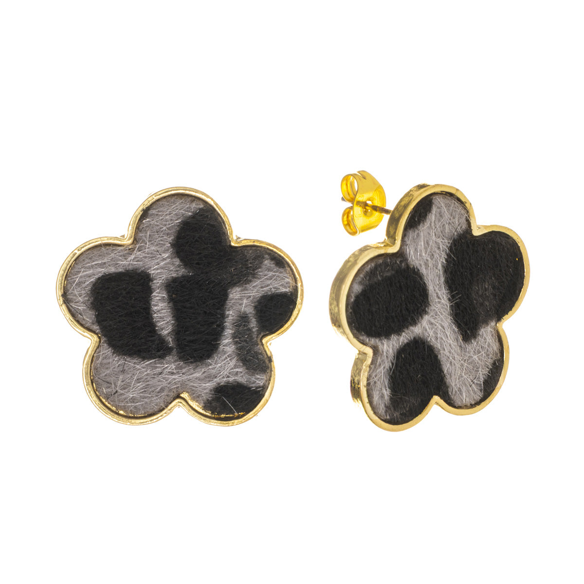 These flower-shaped earrings are decorated with animal-patterned fabric. The earring hooks are made of safe surgical steel (316L steel).