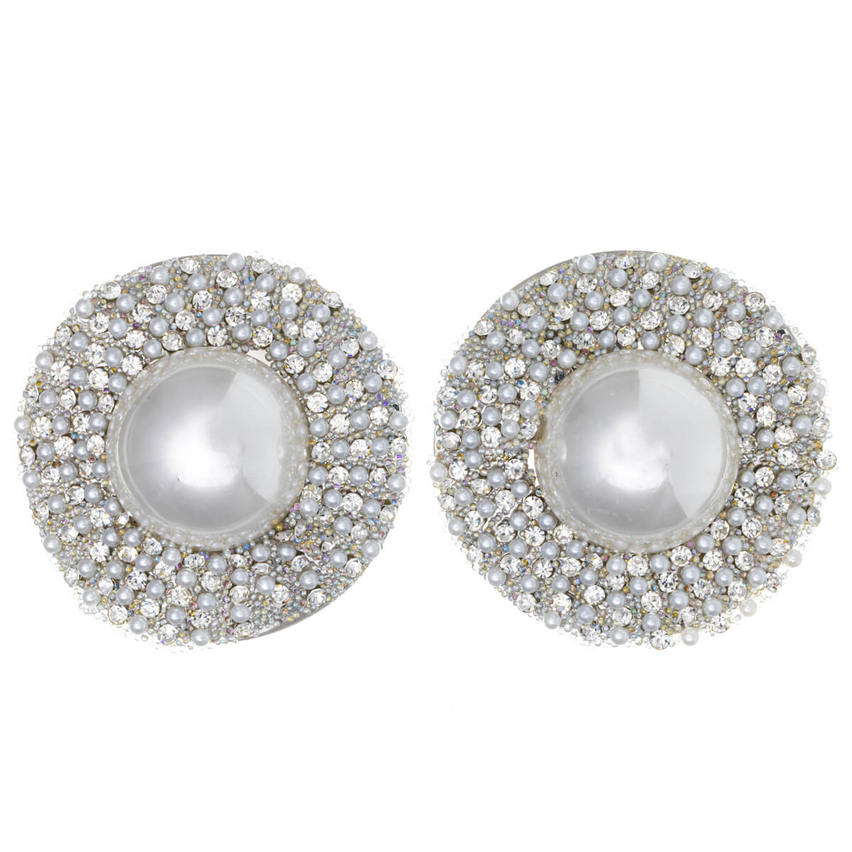 Large flat pearl earrings with rhinestones