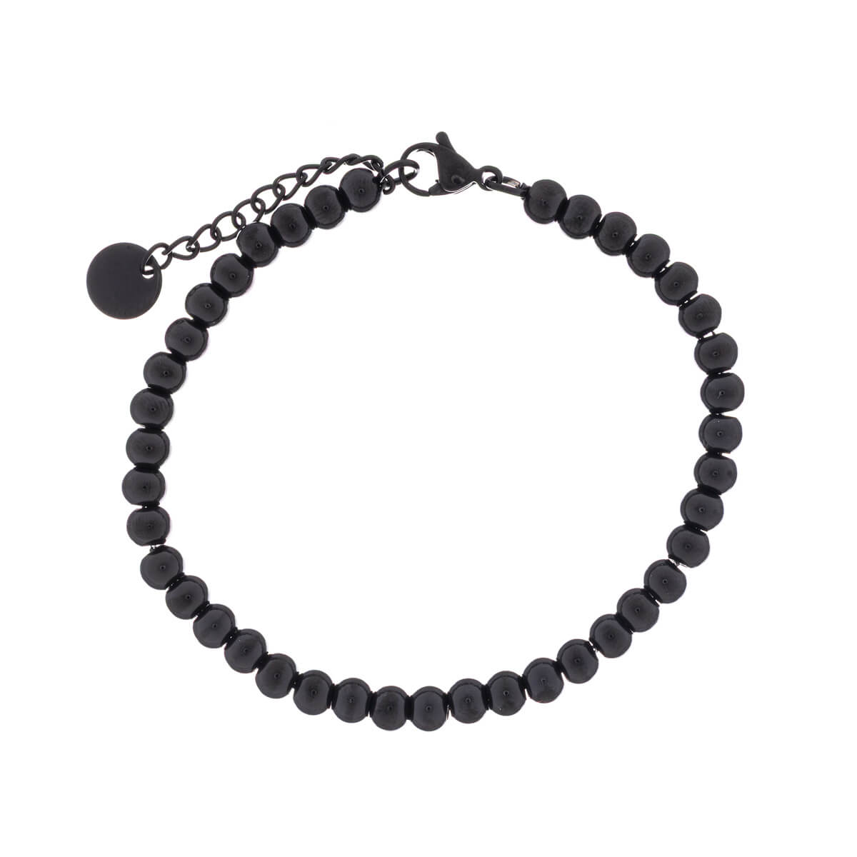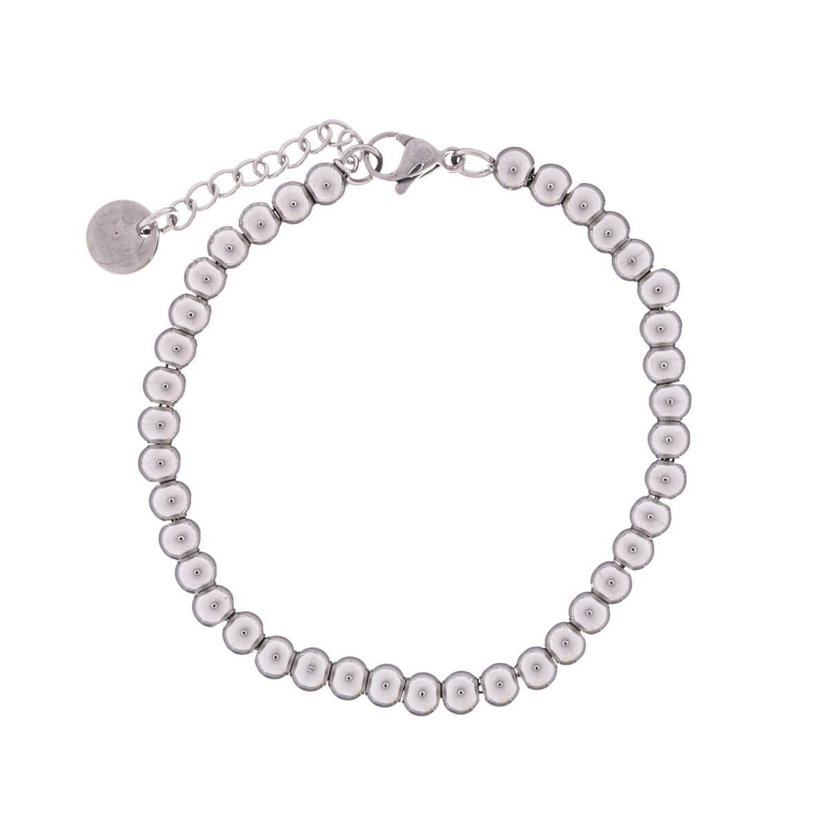Small steel beads are threaded on a steel chain. The bracelet has a 3cm extension chain, which allows it to be adjusted to the right size. The bracelet is made entirely of durable surgical steel.