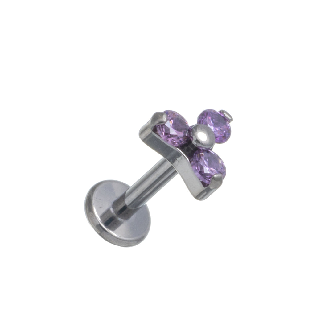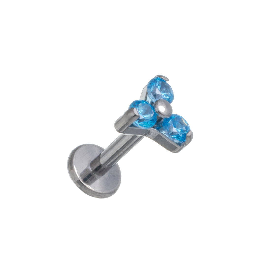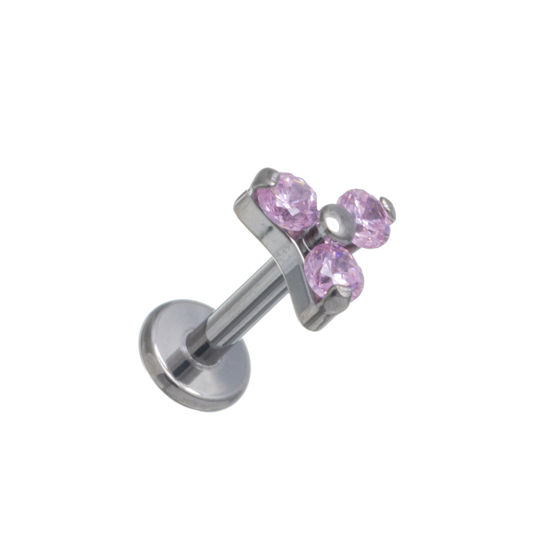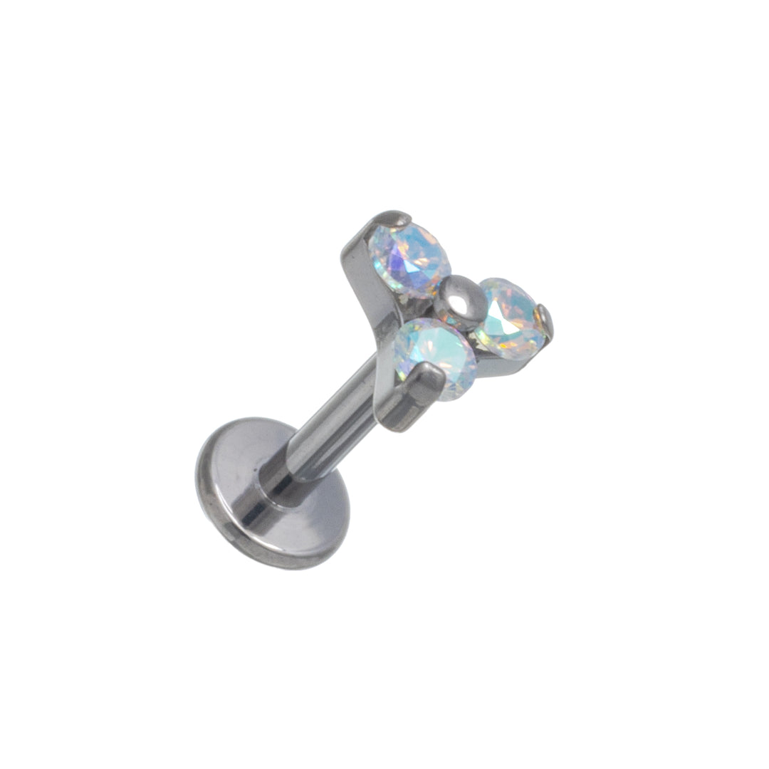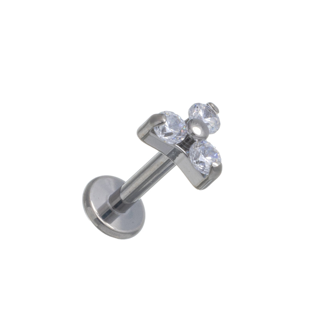 Three zirconia stone triangle bracelet with titanium labret 1.2mm (Titanium G23)