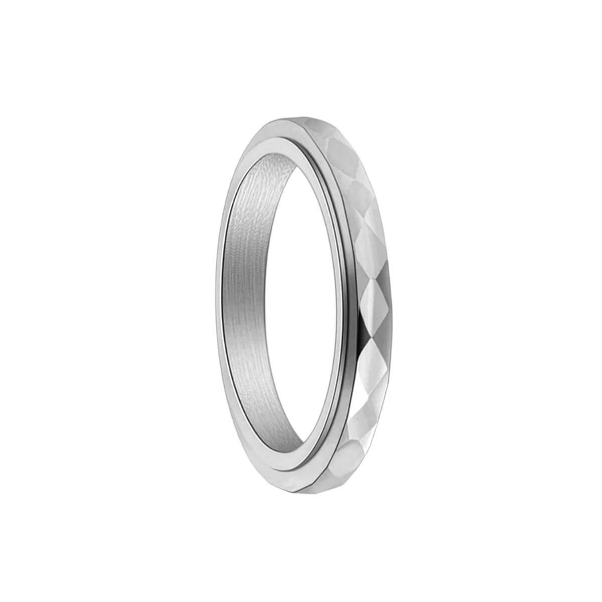 The bevelled, faceted surface reflects light elegantly and makes the ring look like a piece of jewelry – it doesn't look like a fidget toy, but a neat steel ring.