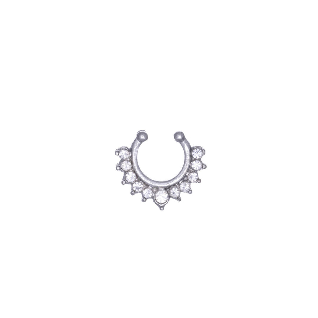Feikki septum koru ei tarvitse lävistystä nenään. Tässä korussa venytät välin siihen leveyteen, että se pysyy kevyessä puristuksessa nenässä.