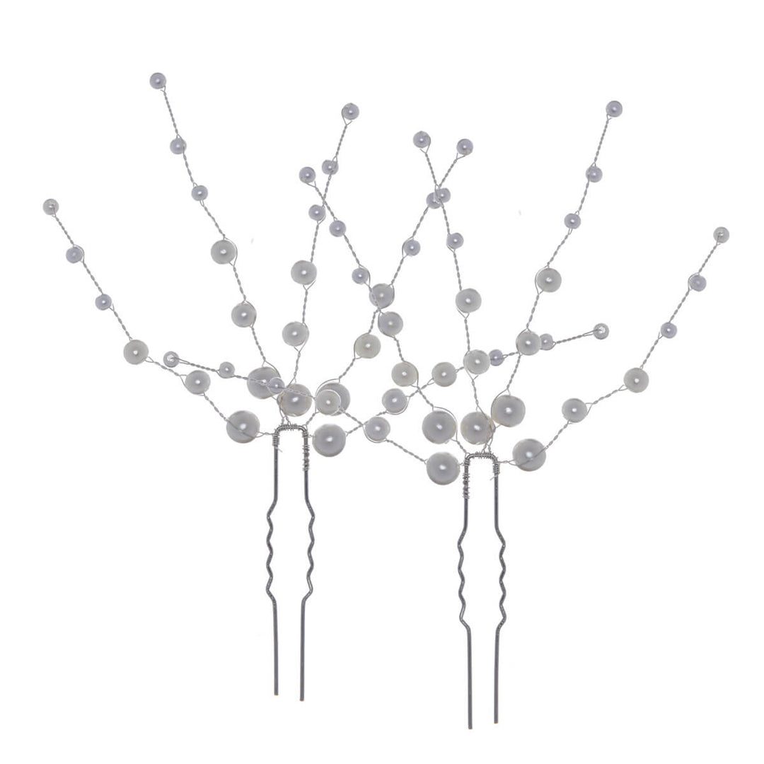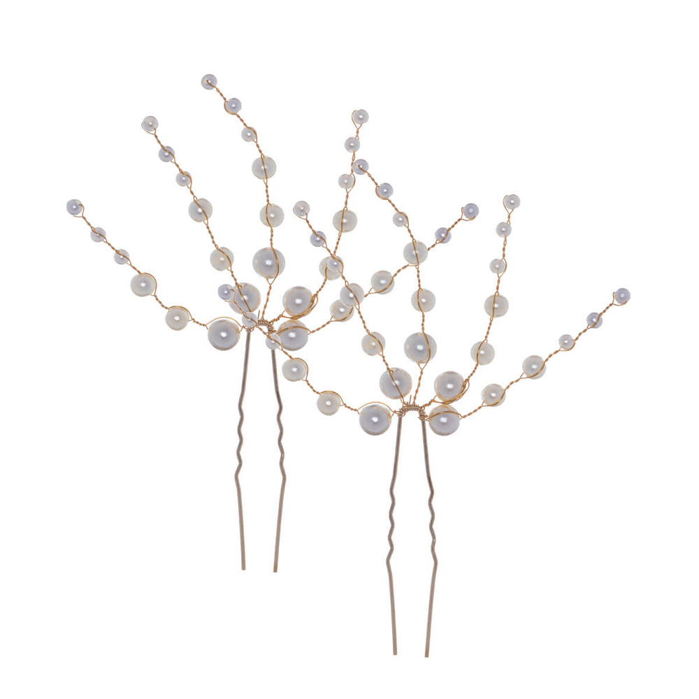 Helmi hiuskoriste tuo kampaukseen varmasti viimeistelyn tuntua. Korussa lähtee viisi rautalankaa, mitkä ovat koristeltu helmillä. Rautalangat muotoiltaan haluttuun muotoon kampauksessa.