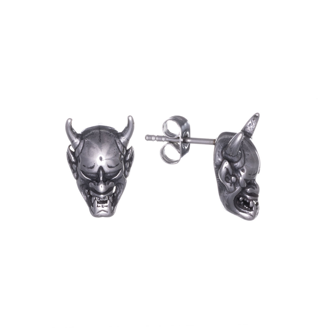 Paholaisen kasvot ovat yksityiskohtaiset tässä korvakorussa. Piru korvakorut ovat kokonaan kirurginterästä. Teräs ei kulu käytössä.