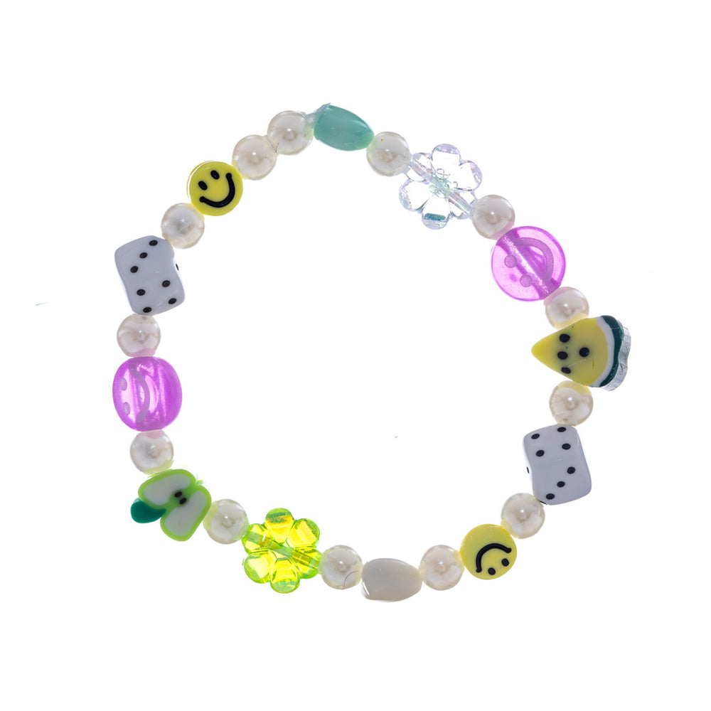 Tämä helmirannekoru on koristeltu erilaisin värikkäin helmin. Rannekoru on vahvassa elastisessa silikonissa, joten erillistä lukkoa ei tarvita.
