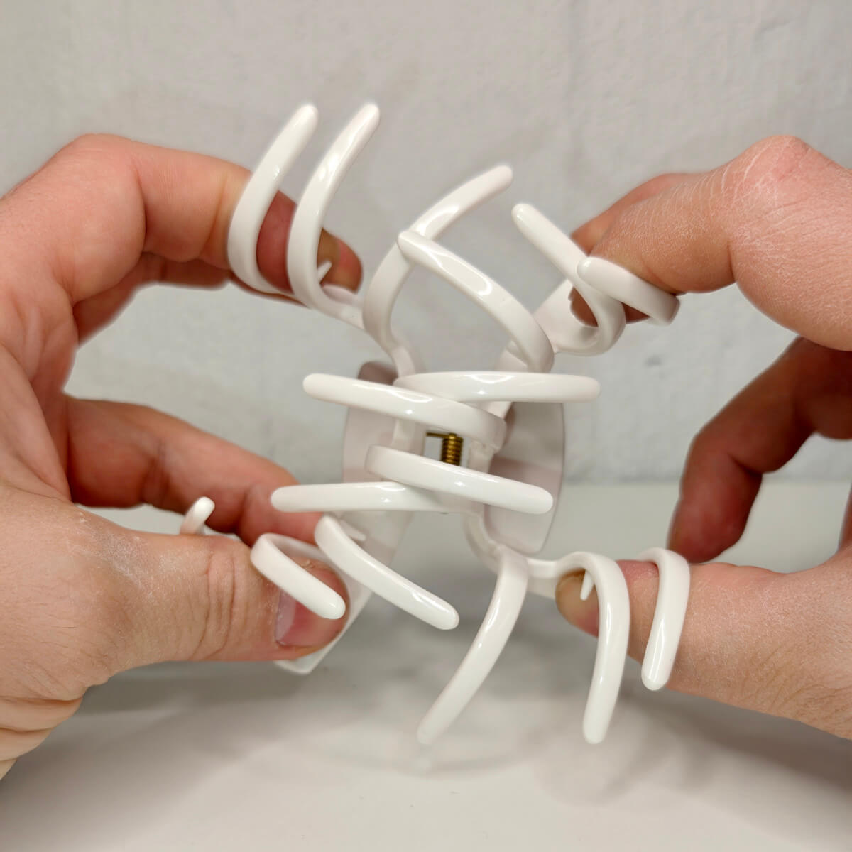 Ett hårklämma med tänder är ett enkelt sätt att fästa och lyfta håret. Hajtänderna gör att du snabbt kan fästa håret. Den flexibla plasten i denna modell går inte sönder vid användning.