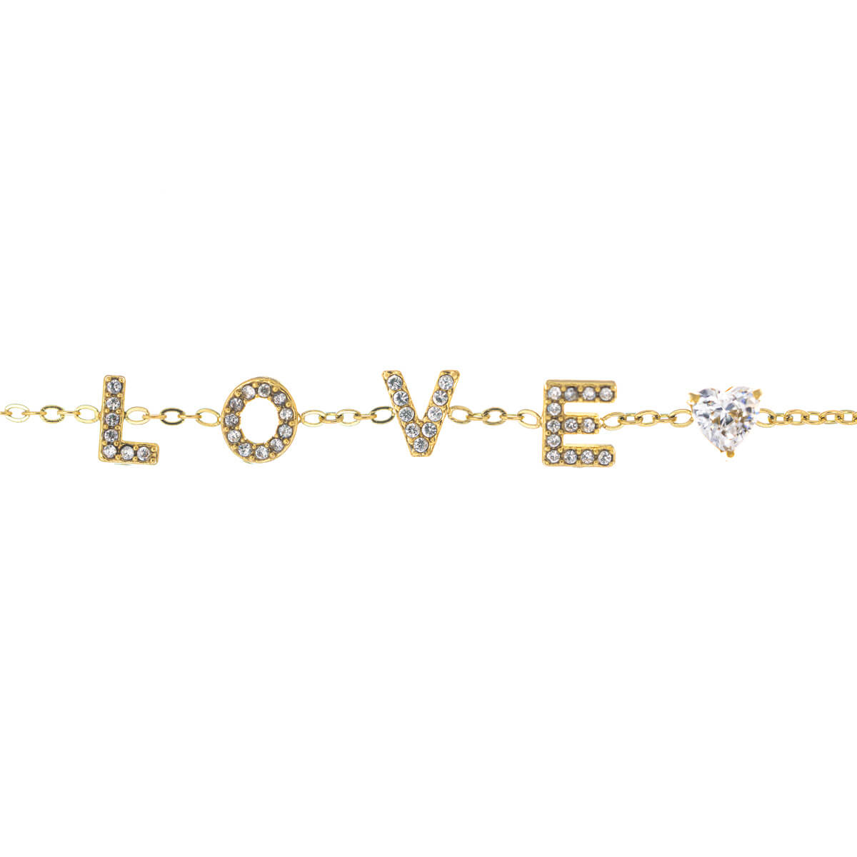 Det tunna armbandet pryds av texten Love, vars bokstäver är dekorerade med zirkoniastenar. Efter ett test har armbandet en hjärtformad zirkoniasten. Armbandet är helt tillverkat av kirurgiskt stål.