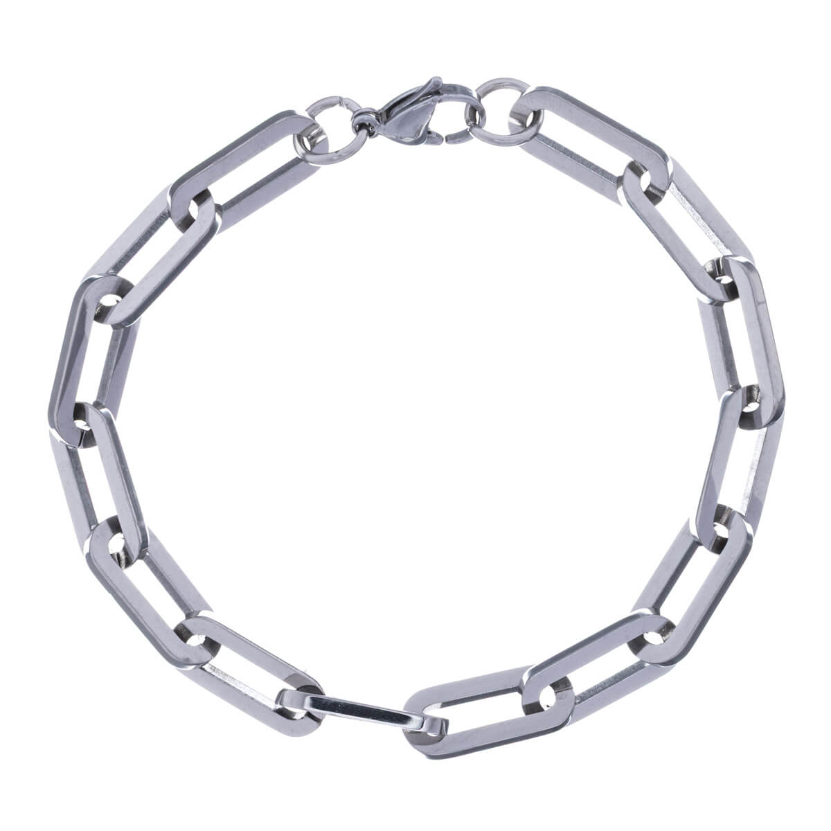 Denna trendiga kabelkedja är en enkel länkfläta. Armbandsarmbandet i stål är slitstarkt och hållbart. Armbandsarmbandet kan förkortas genom att ta bort önskat antal länkar.