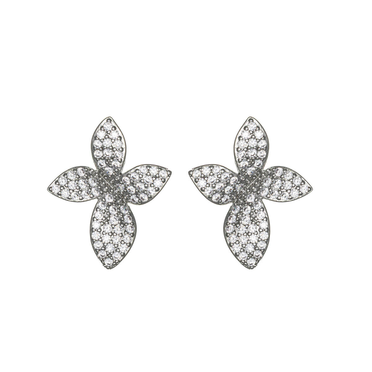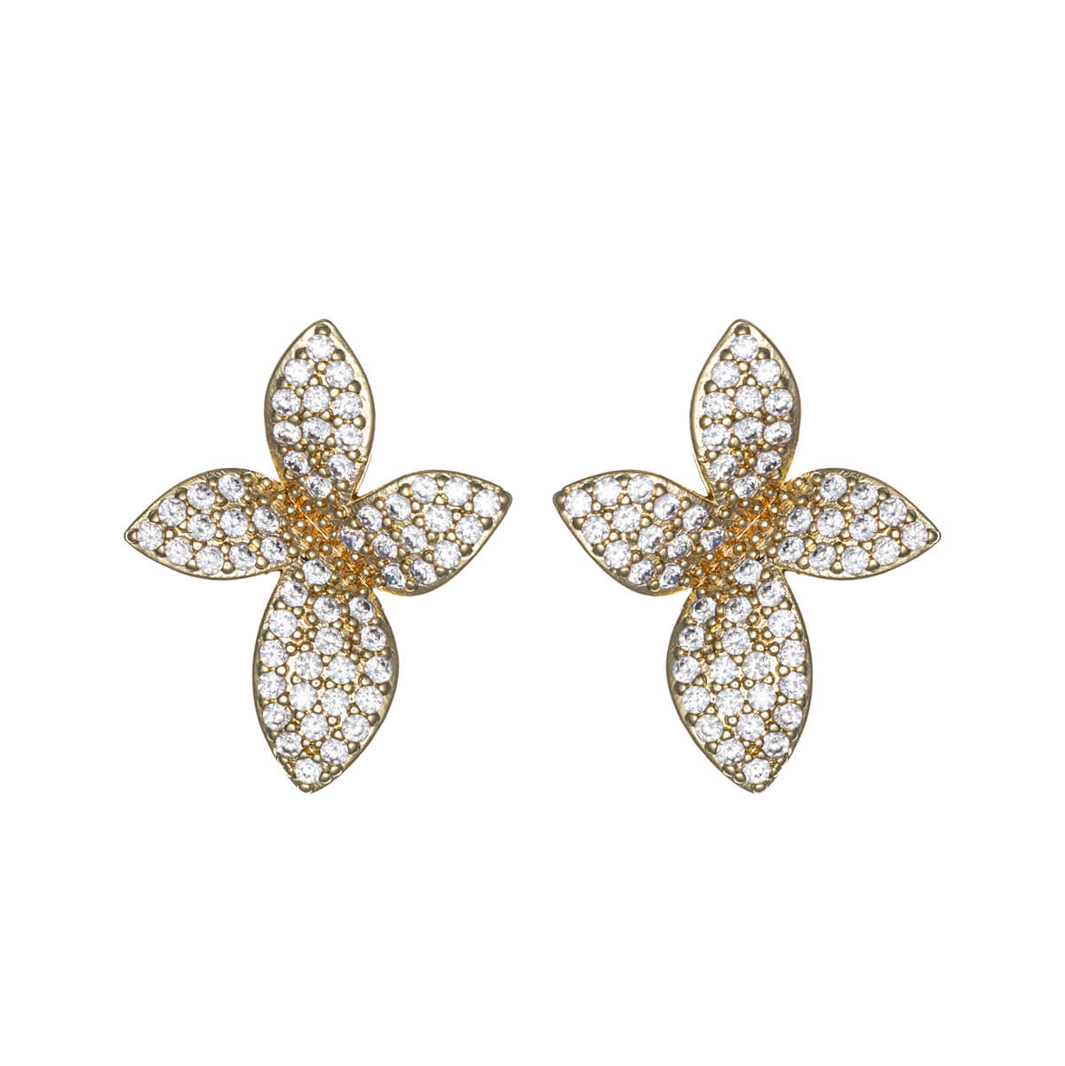 Ljusa zirkoniastenar gnistrar vackert i dessa örhängen. De blomformade örhängena är perfekta för fest. Produkten har noggrant bearbetats och pläterats till en hög standard.