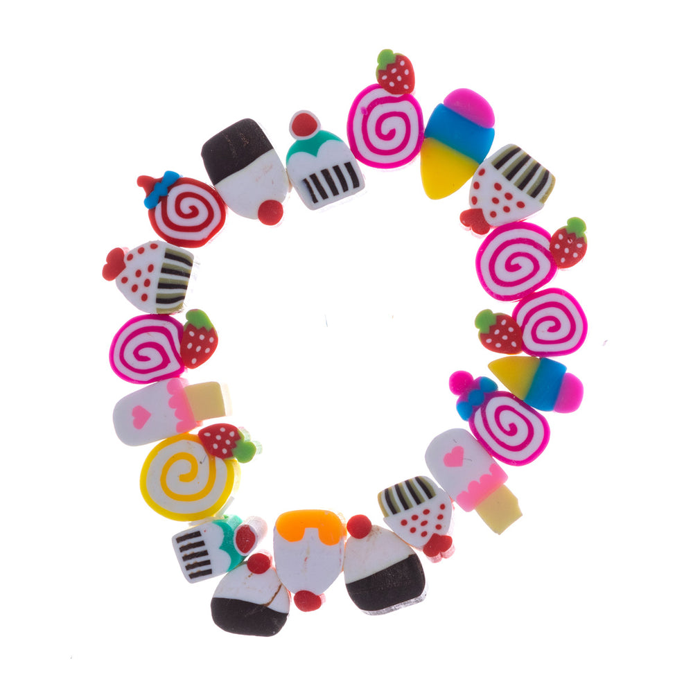 Flerfärgade pärlor gör detta armband riktigt läckra. Särskilt när pärlorna visar olika bakverk och delikatesser.