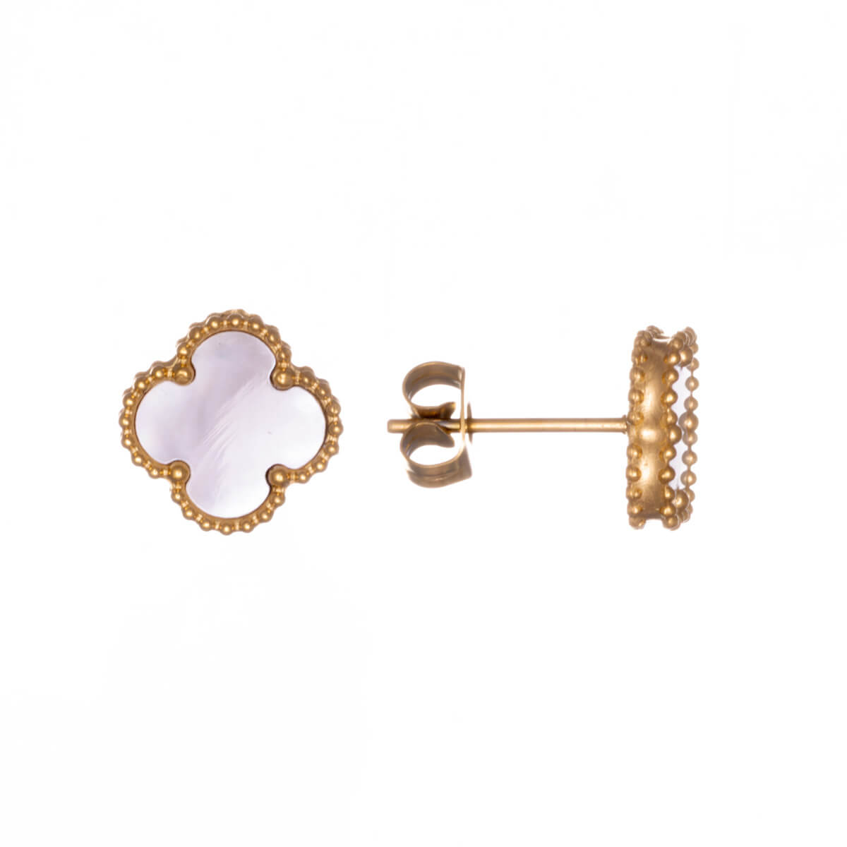 Tidlösa och trendiga örhängen med fyrklöverblomma som kombinerar en minimalistisk form med en elegant pärlfinish. Denna örhängesmodell är för närvarande populär tack vare sin tydliga, lyxiga och lättkombinerade design.